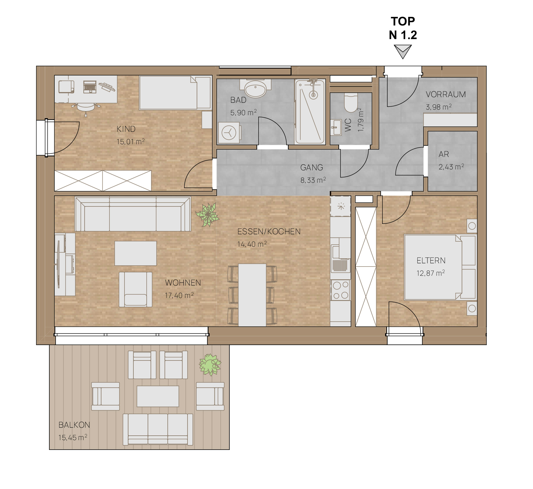 15,45 m² Balkon