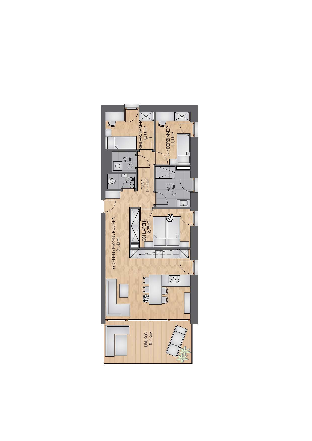 Alle Wohnungen überzeugen mit großzügigen, überdachten Terrassen oder Loggien und sind nach Süden oder Westen ausgerichtet, um Sonne und Ausblick bestmöglich zu genießen.