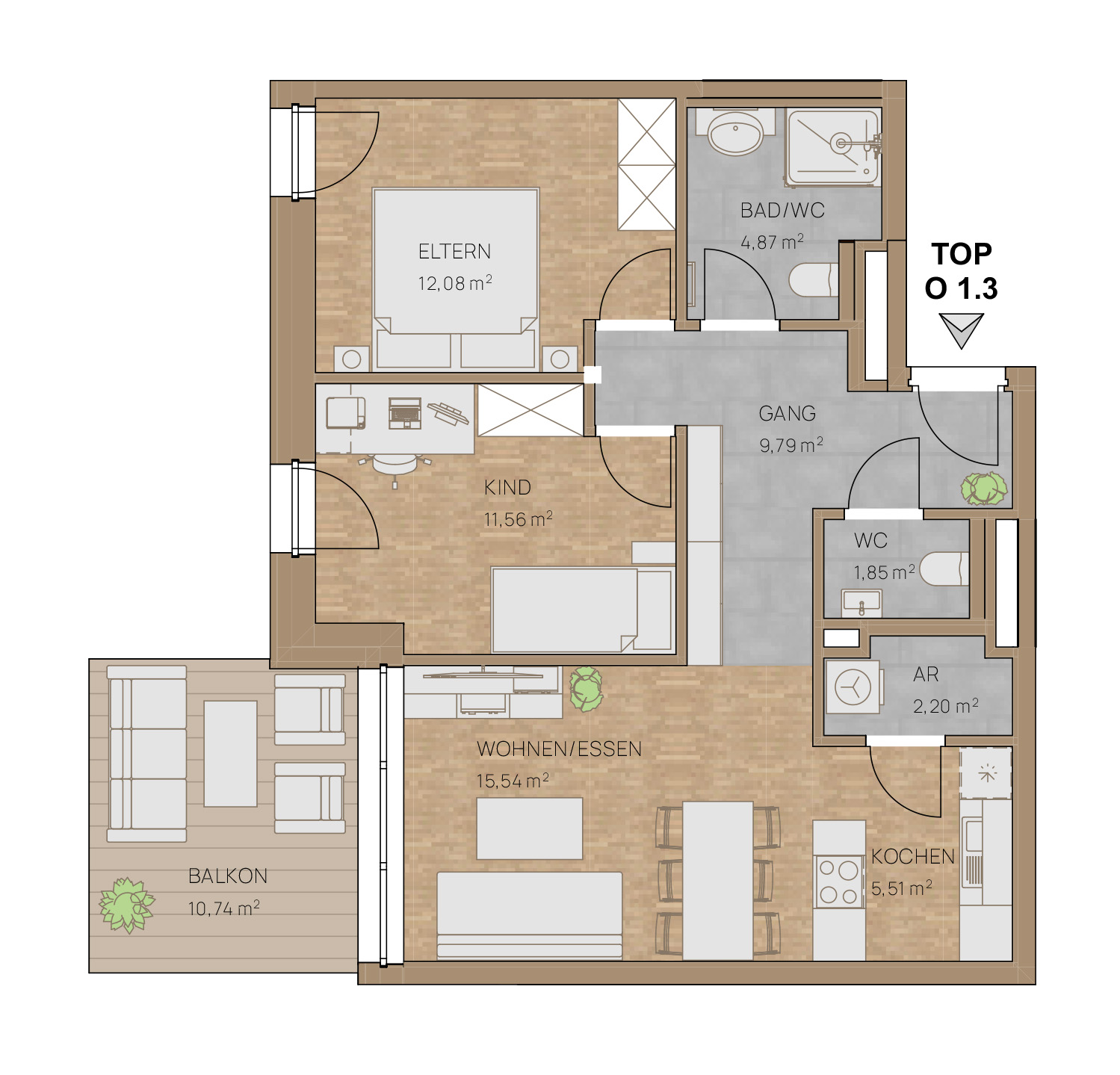 10,74 m² Balkon