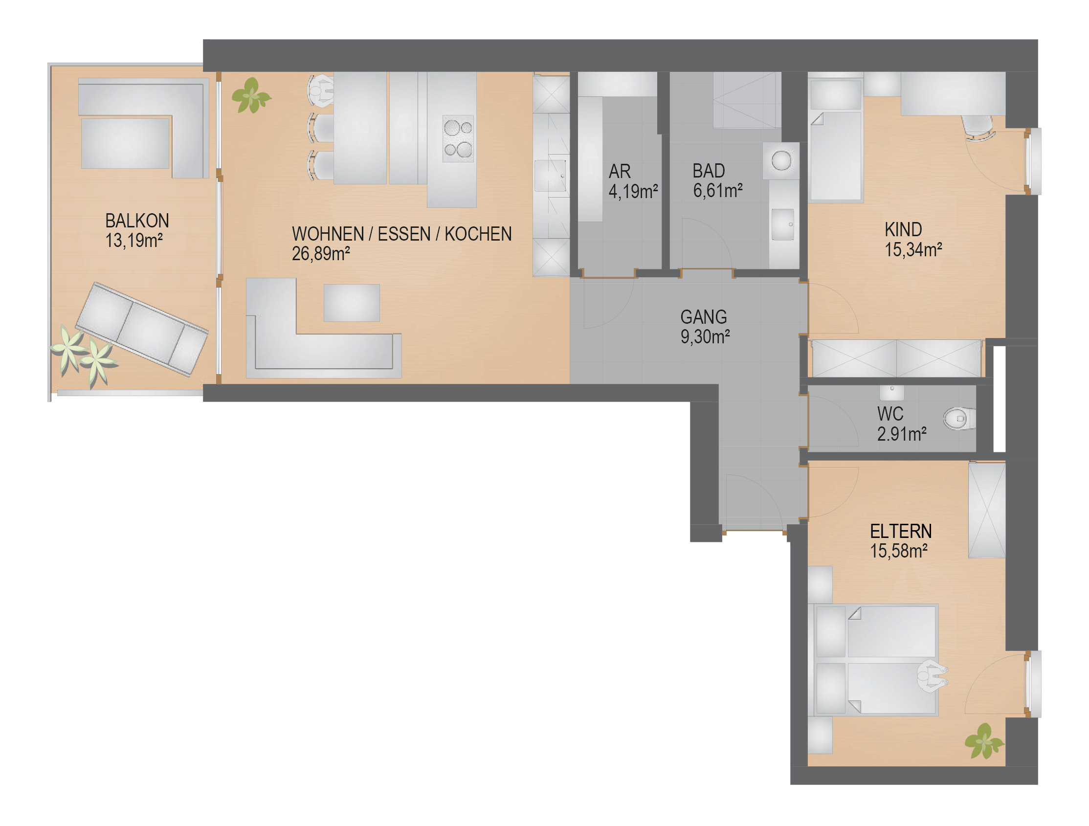 13,19 m² Balkon